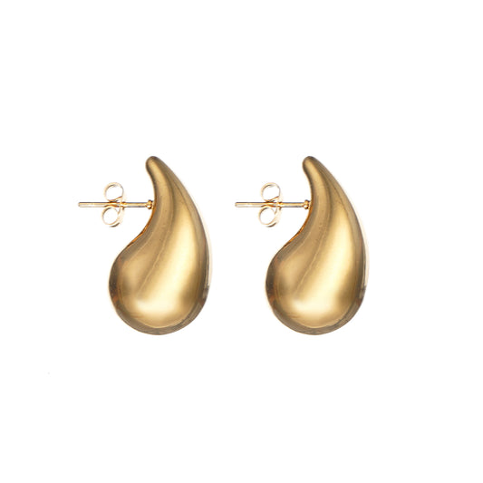 Puffed Raindrop Earrings 26mm in IP Yellow Gold 316 Stainless Steel | Modern Minimalist Jewelry...