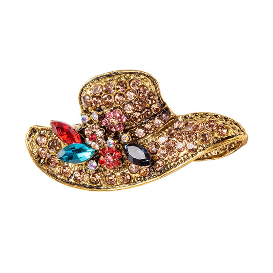 Bedazzled Hat Brooch Pin Jewelry with Crystals in Yellow Gold Over Brass: A Touch of...