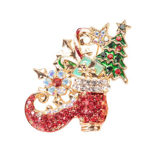 Christmas Elf Santa Boot Brooch Pin with Crystals – A Whimsical Touch of Holiday Cheer...
