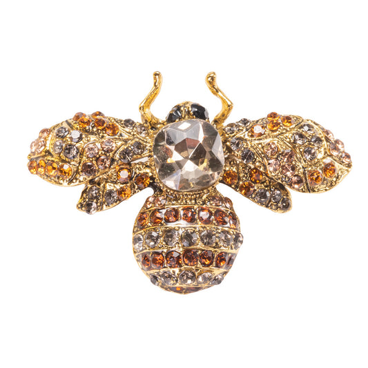 Bee Brooch Pin Jewelry with Chamapagne Crystal in Yellow Gold Over Brass with 22 inch Steel Chain