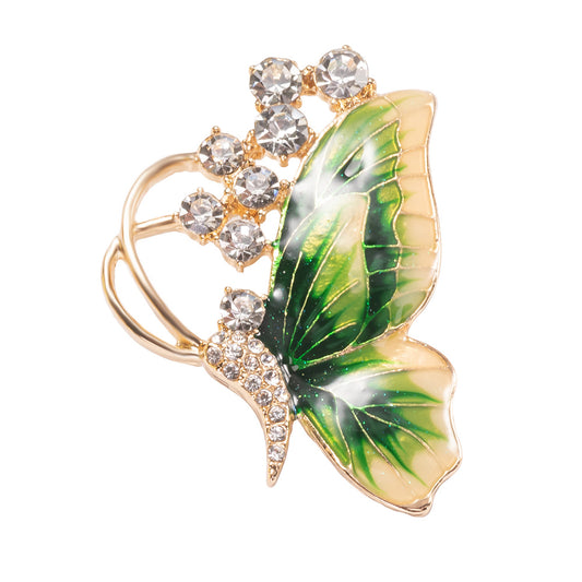 🦋 Butterfly Brooch Pin Jewelry in Green Enamel & Crystals | Nature’s Radiance in Every...