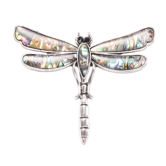 Abalone Shell Dragonfly Brooch Pin and Necklace Jewelry with Surgical Steel Chain 20 inch