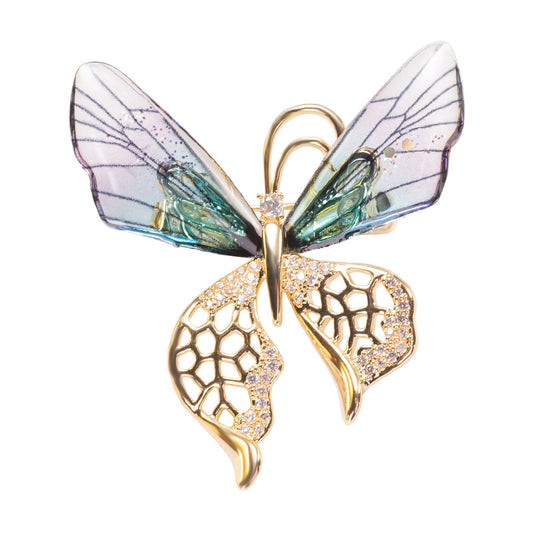 Butterfly Brooch Pin Jewelry with CZ in Yellow Gold Over Brass: Embrace Transformation and Elegance...
