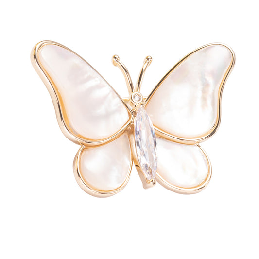 Butter Brooch Pin Jewelry with Inlay Mother of Pearl and CZ in Yellow Gold Over...