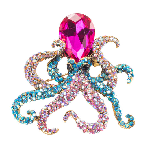 Vintage Multicolor Crystal Octopus Brooch Pin Jewelry and Pendant Necklace with Steel Chain: Dive into...