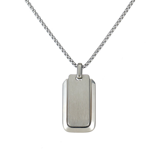 🤍 Men’s Dog Tag Pendant Necklace in IP White Gold Over Stainless Steel – 24-Inch...