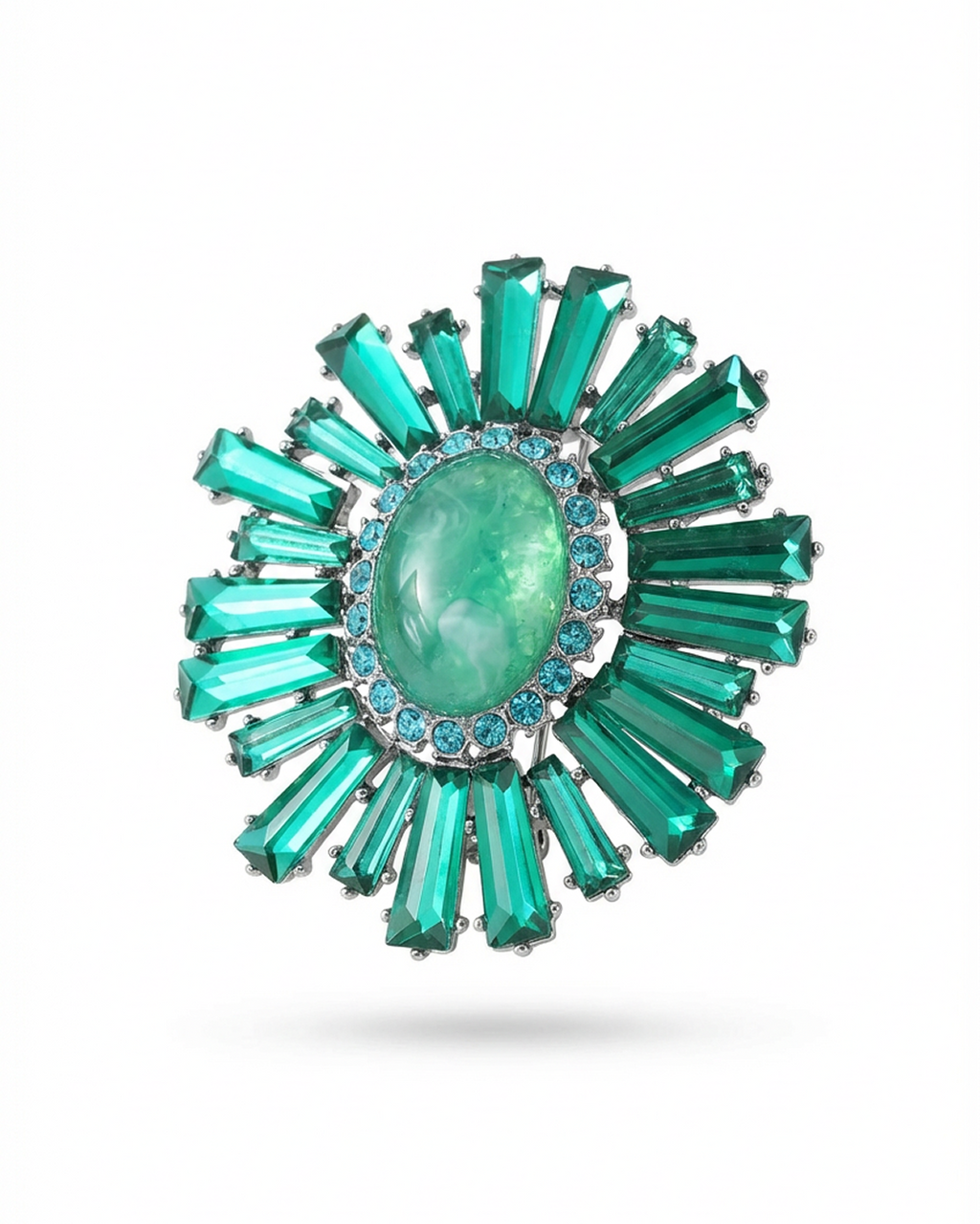 Victorian Era Inspired Floral Brooch Pin with Simulated Emerald | Brass — 2.65" Capture timeless...