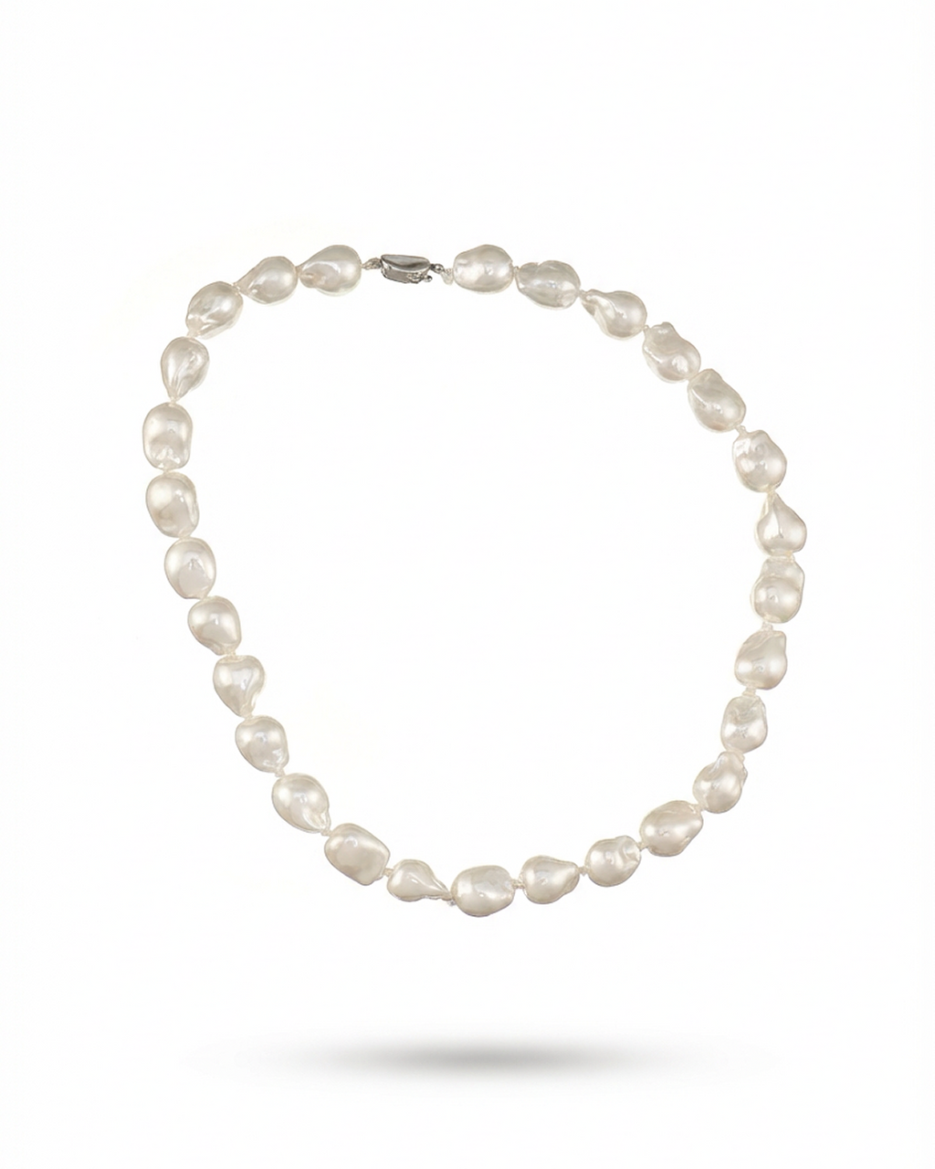 10–12mm White Baroque Freshwater Shell Pearl Necklace — 18" Elevate your elegance with this stunning...