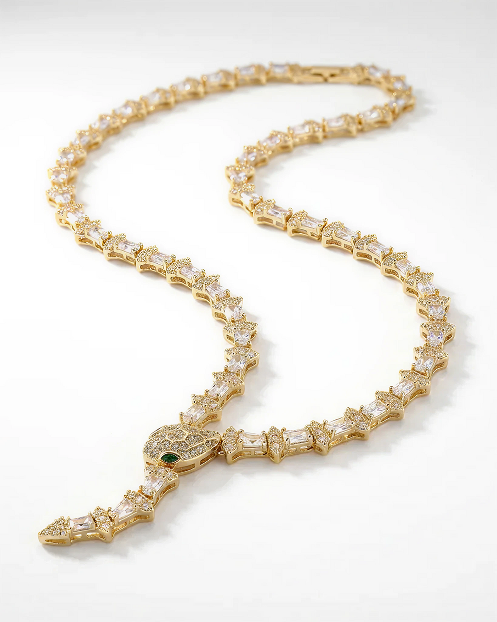Statement Snake Necklace with Pavé Simulated Diamonds | Yellow Gold Over Brass — 17" +...