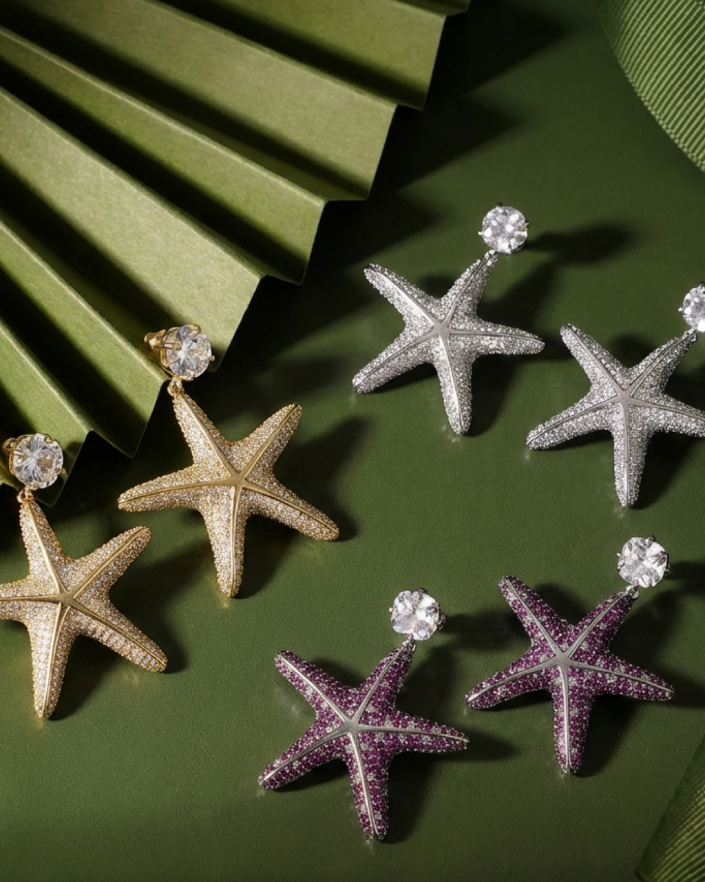 Statement Starfish Earrings with Pavé Simulated Diamonds | Yellow Gold Over Brass with Silver Findings...