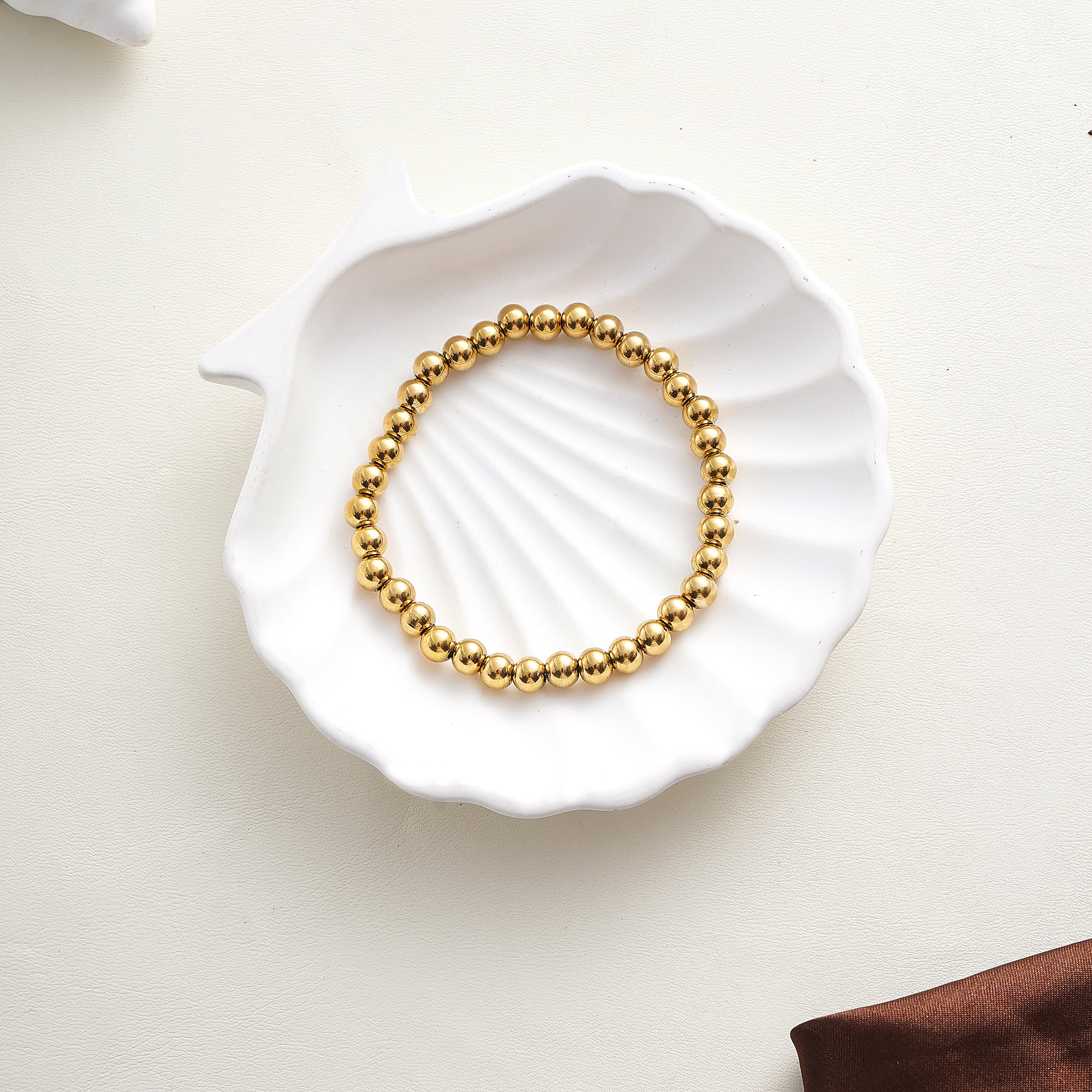 316 Stainless Steel Stretch Bead Bracelet 6mm – IP Yellow Gold | Affordable Luxury Unisex Gift