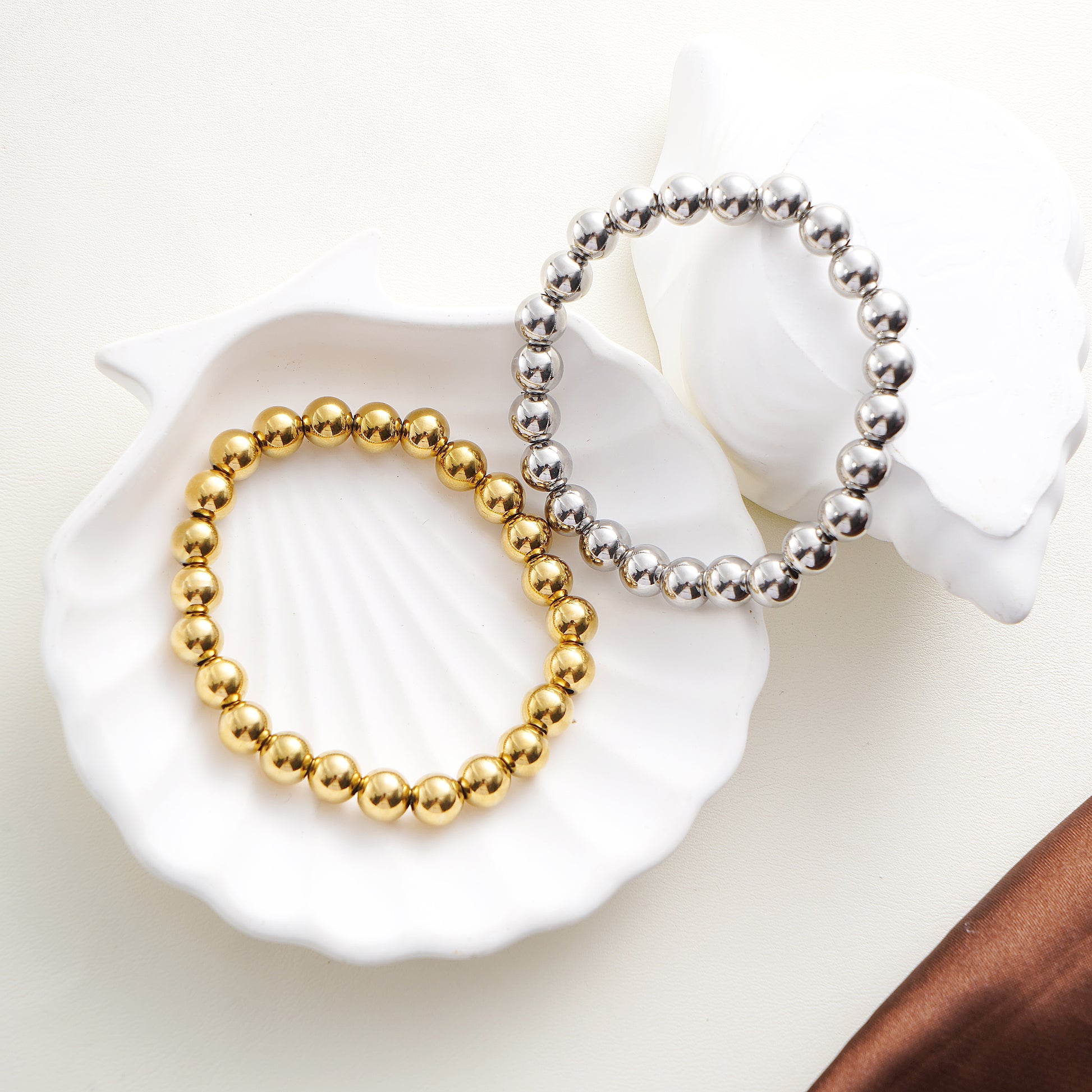 316 Stainless Steel Stretch Bead Bracelet 8mm – IP Yellow Gold | Affordable Luxury Unisex Gift