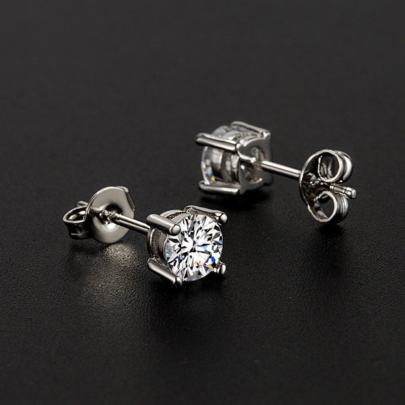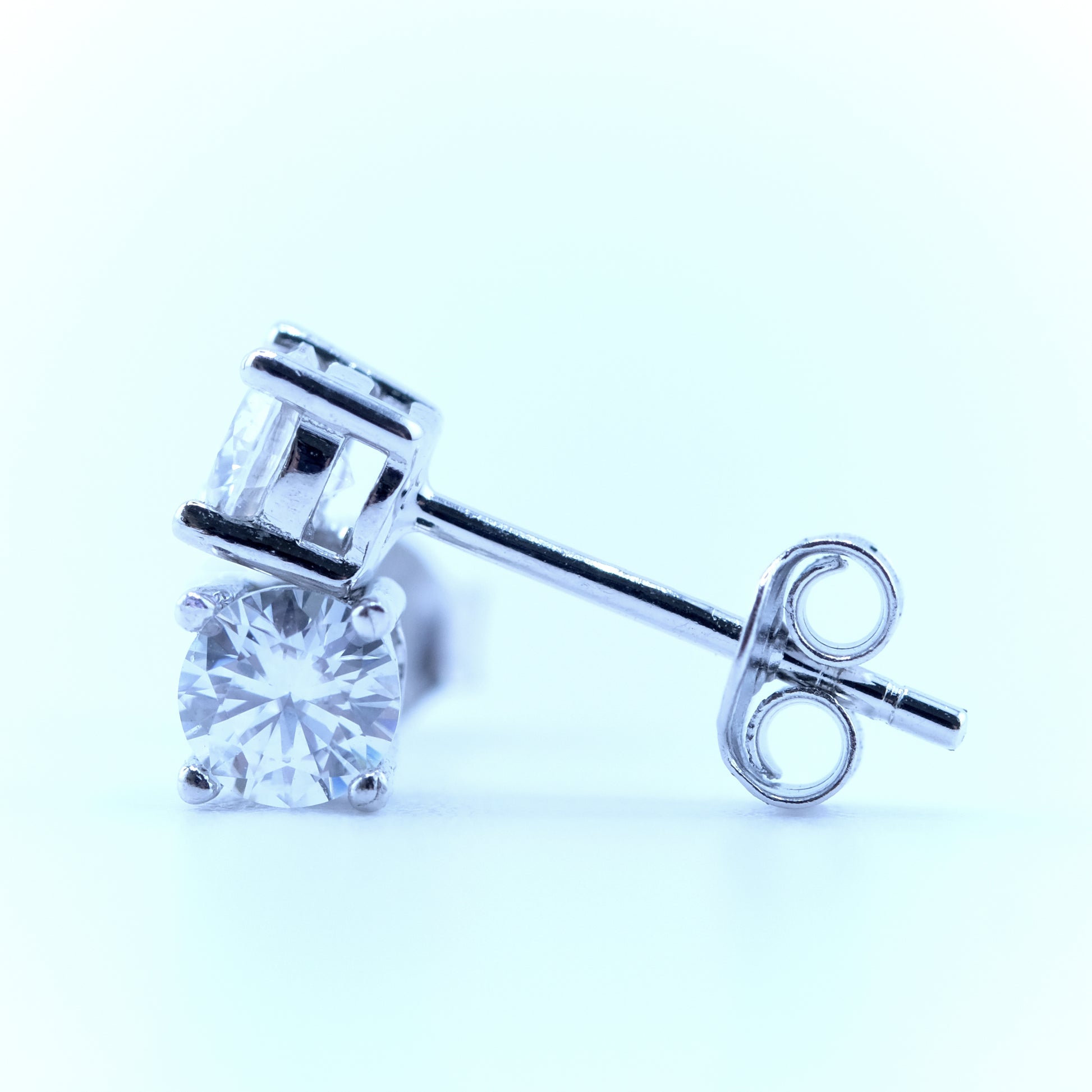 Lab Grown Moissanite Stud earring in sterling silver 4mm round VVS EF 0.6 ct
