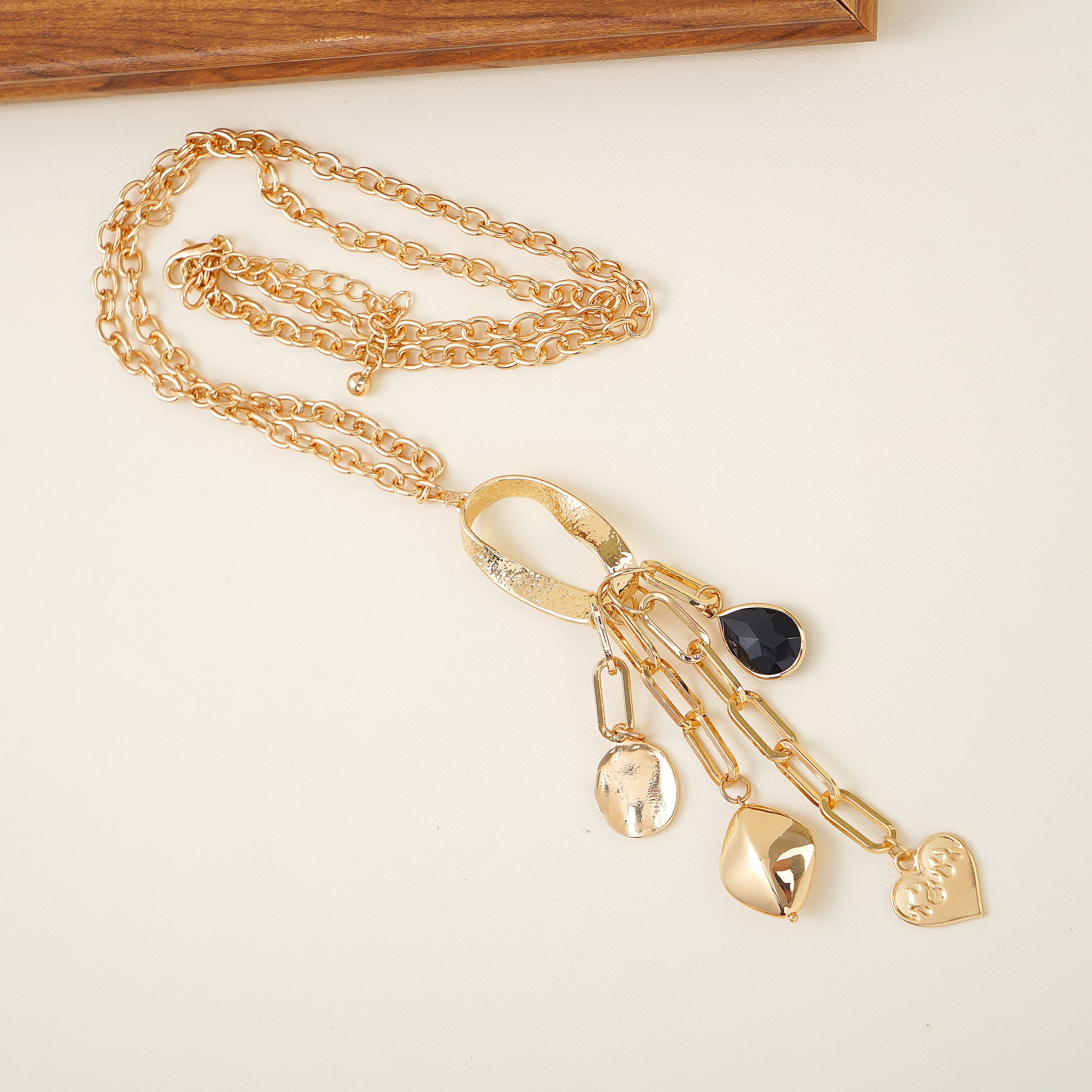 Affordable Luxury-Charm Lariat Necklace – Yellow Gold Over Brass