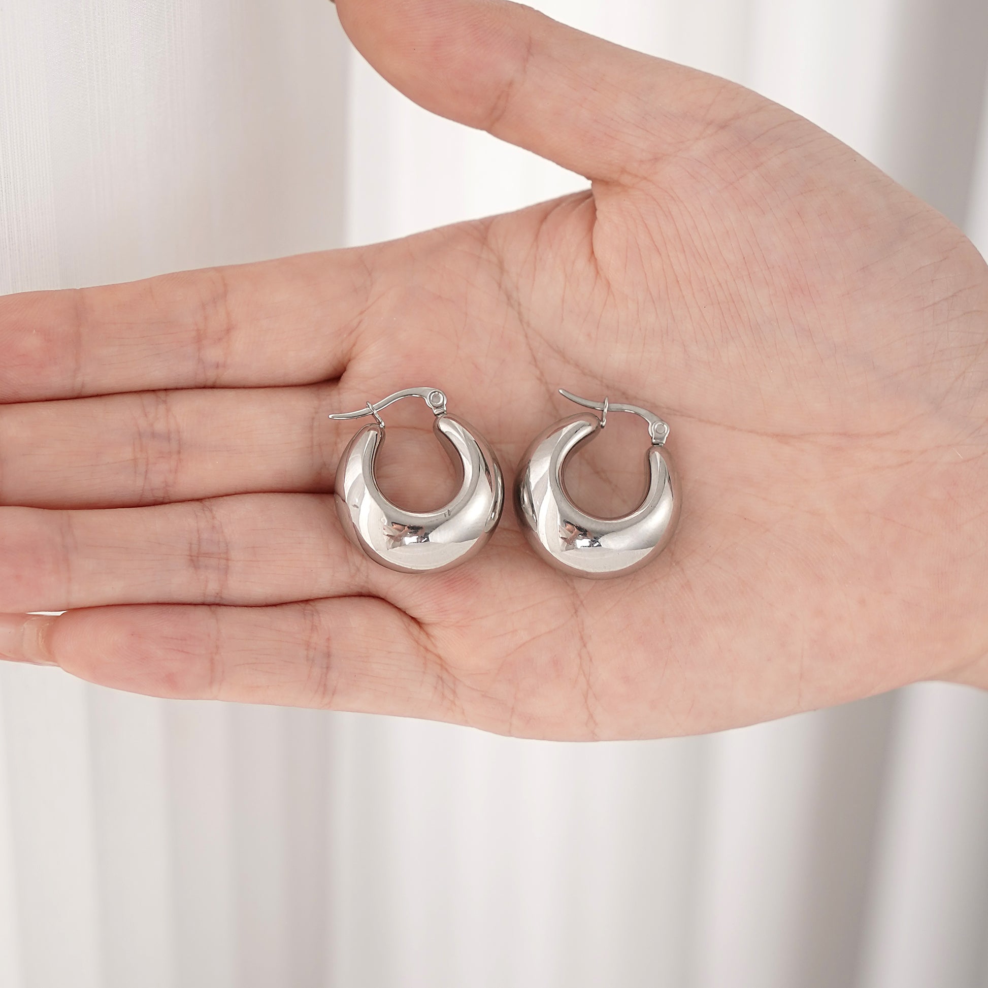 Chunky Puffed Hoop Earrings 22mm in 316 Stainless Steel | Bold Everyday Statement Jewelry