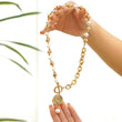 Make a sophisticated statement with our Designer Coin Necklace featuring a lustrous pearl and T-bar clasp in yellow gold over brass. Combining timeless elegance with modern design, this necklace is perfect for layering or wearing solo as a chic, standout piece.