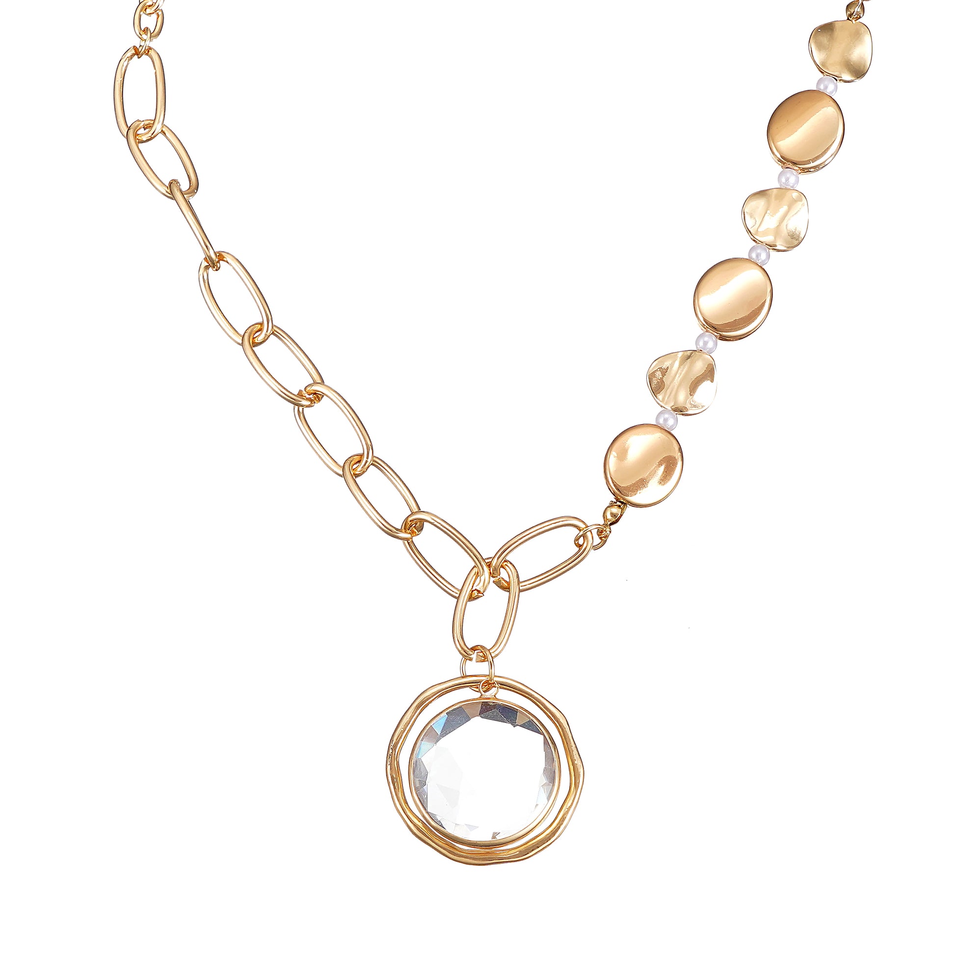 Designer Necklace with Crystal Medallion – Yellow Gold Over Brass