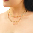 Make a statement with our Double Layered Chain Double Circle Necklace in yellow gold plating—a modern twist on classic elegance. Featuring two interlocking circles on a chic double-layered chain, this necklace is perfect for adding dimension and sophistication to any outfit.