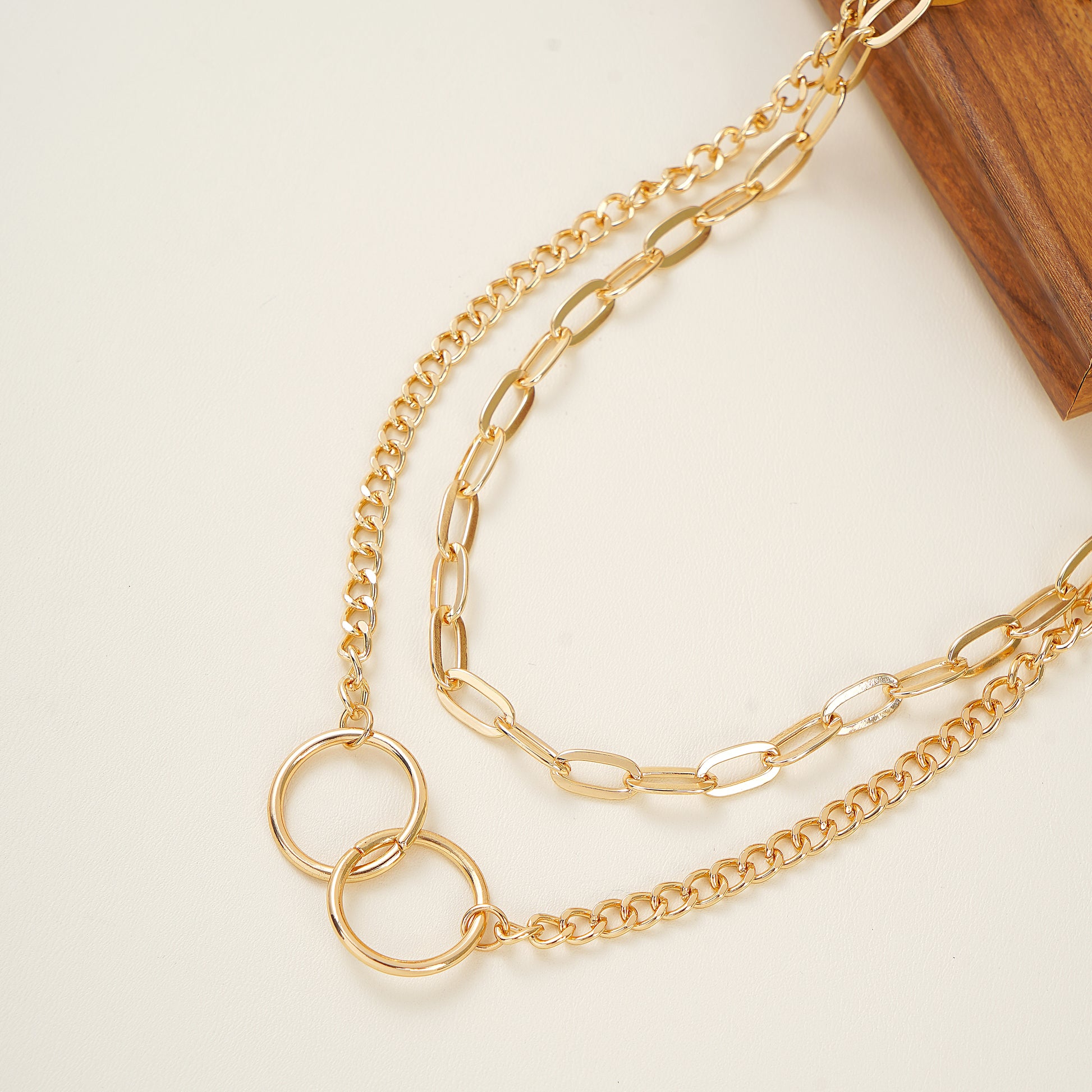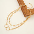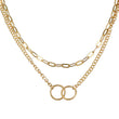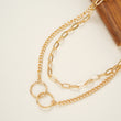 Double Layered Chain Double Circle Necklace in Yellow Gold plating