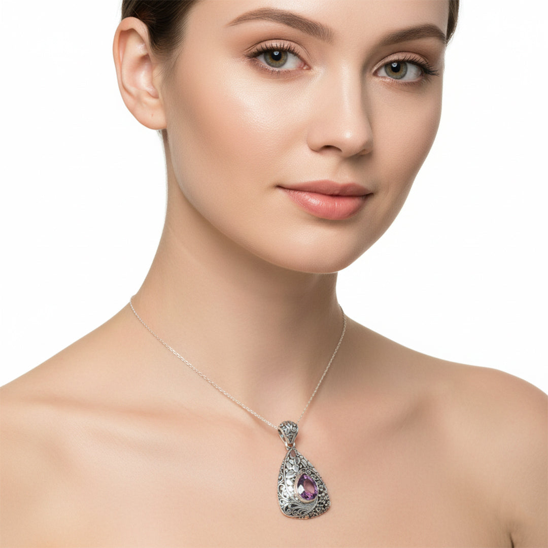 Whether worn as a statement piece or cherished as a symbol of Bali's natural beauty, our Hand Crafted Pendant with Pink Amethyst is a timeless addition to any jewelry collection. Its versatile design and understated elegance make it suitable for both casual wear and special occasions, ensuring that it will be treasured for years to come.
