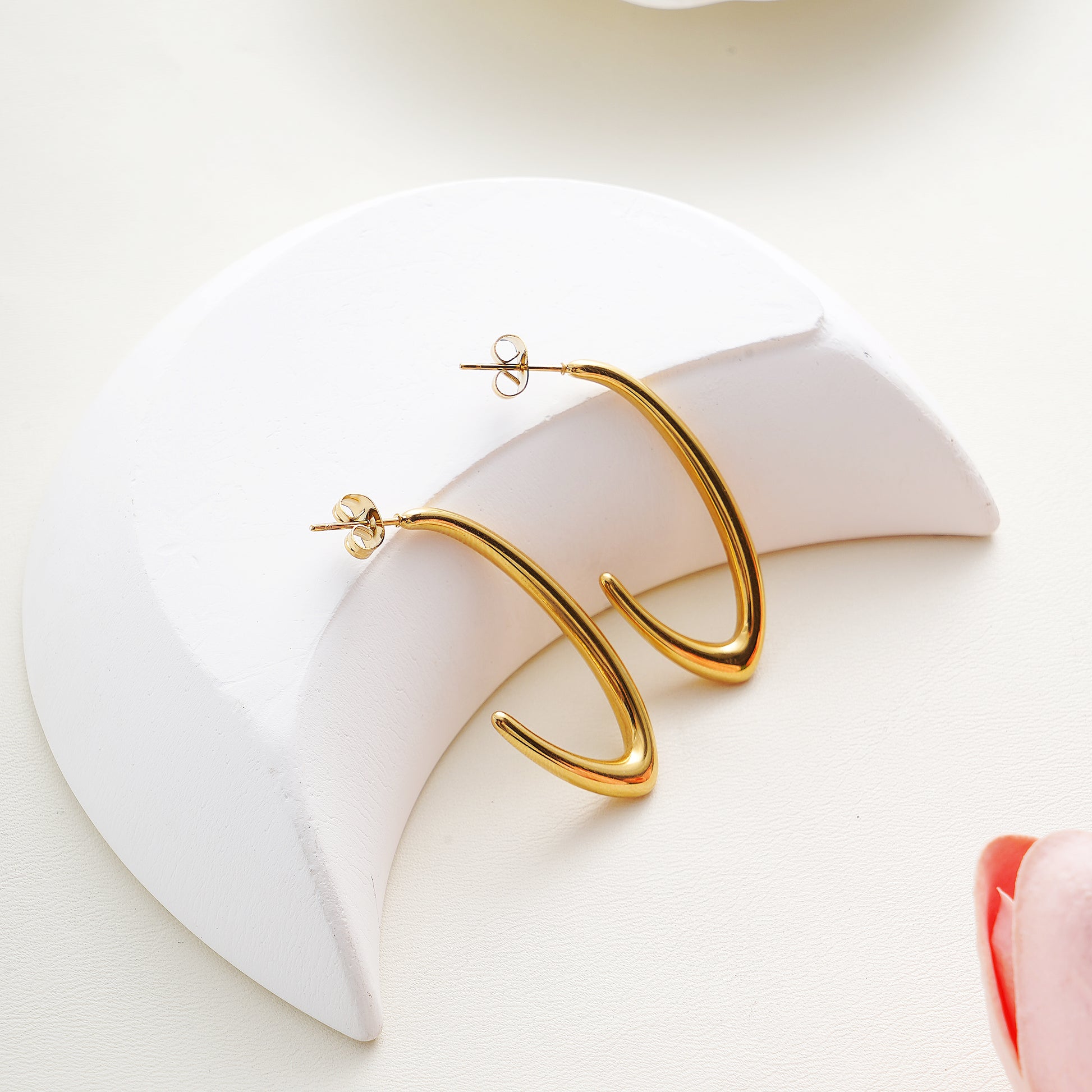 J Hoop Geometric Earrings in IP Yellow Gold 316 Stainless Steel | Minimalist Modern Everyday Jewelry
