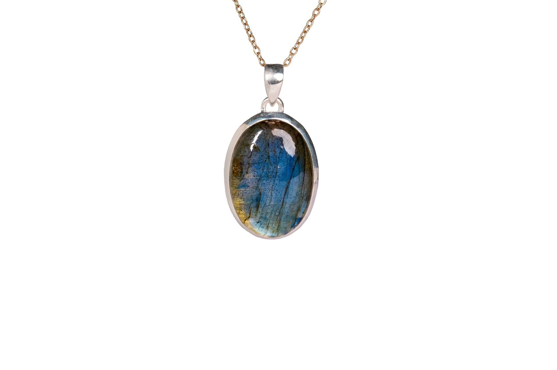Mysterious glow meets everyday elegance. This Natural Labradorite pendant reflects light with stunning labradorescence, adding depth and sophistication to any look.