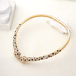 Unleash your bold elegance with this Leopard Choker Statement Necklace, a striking fusion of confidence, artistry, and unmistakable style. Crafted in Yellow Gold over Brass, the choker features a sculpted leopard head motif, encrusted with pavรฉ simulated diamonds that sparkle from every angle. The hinge design offers a secure, comfortable fit while maintaining its statement-making shape and presence.