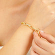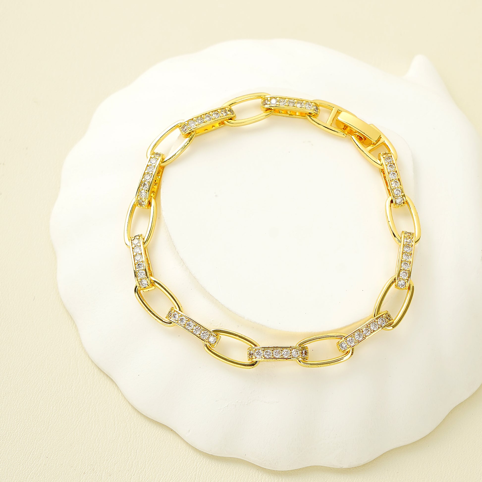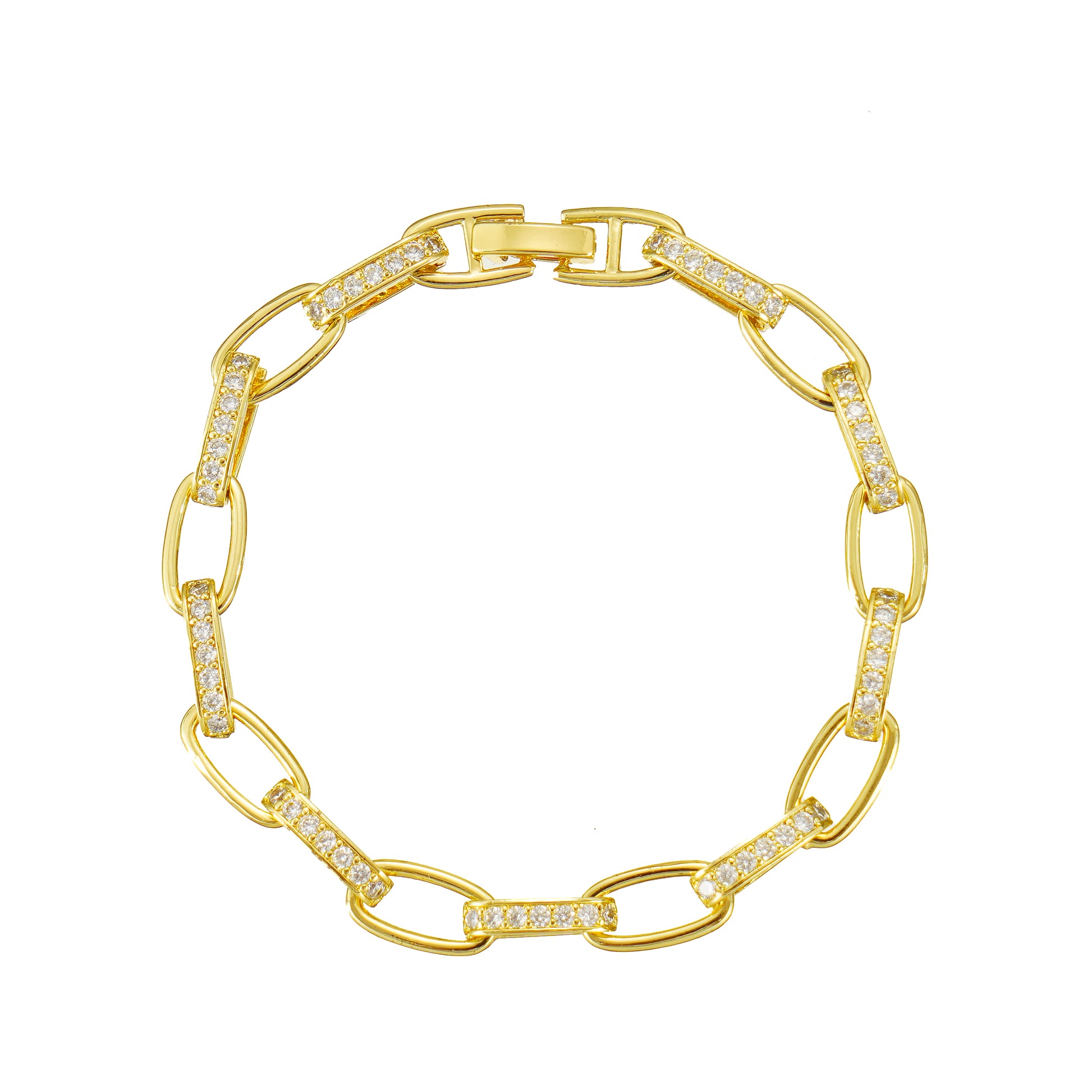 Paper Clip Bracelet in Yellow Gold Plating with Pave Simulated Diamond 7inch
