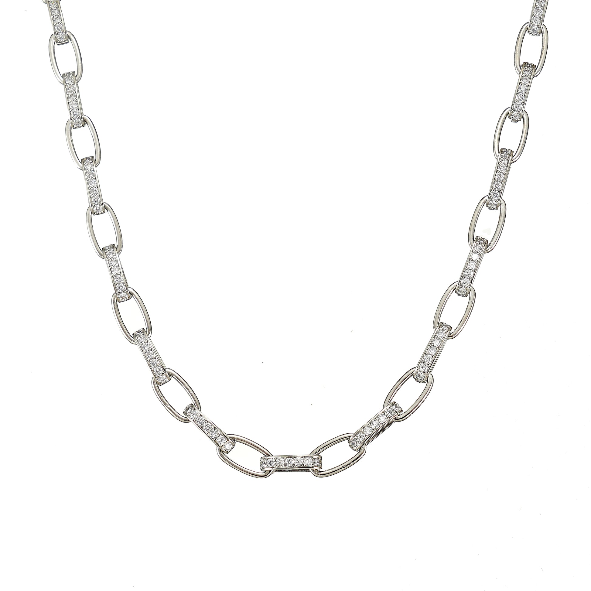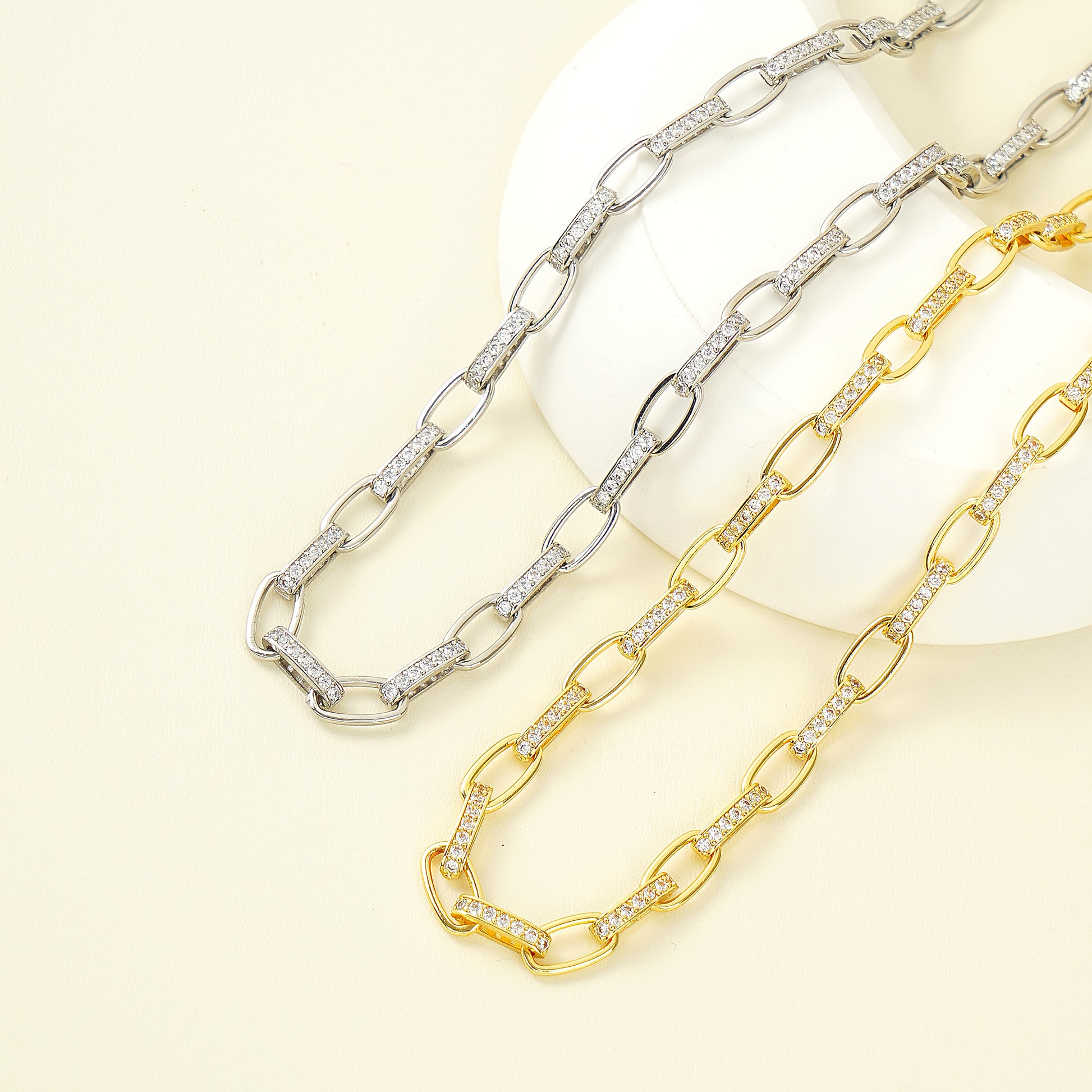 Trendy paper clip chain necklace with pavé simulated diamond accents