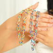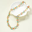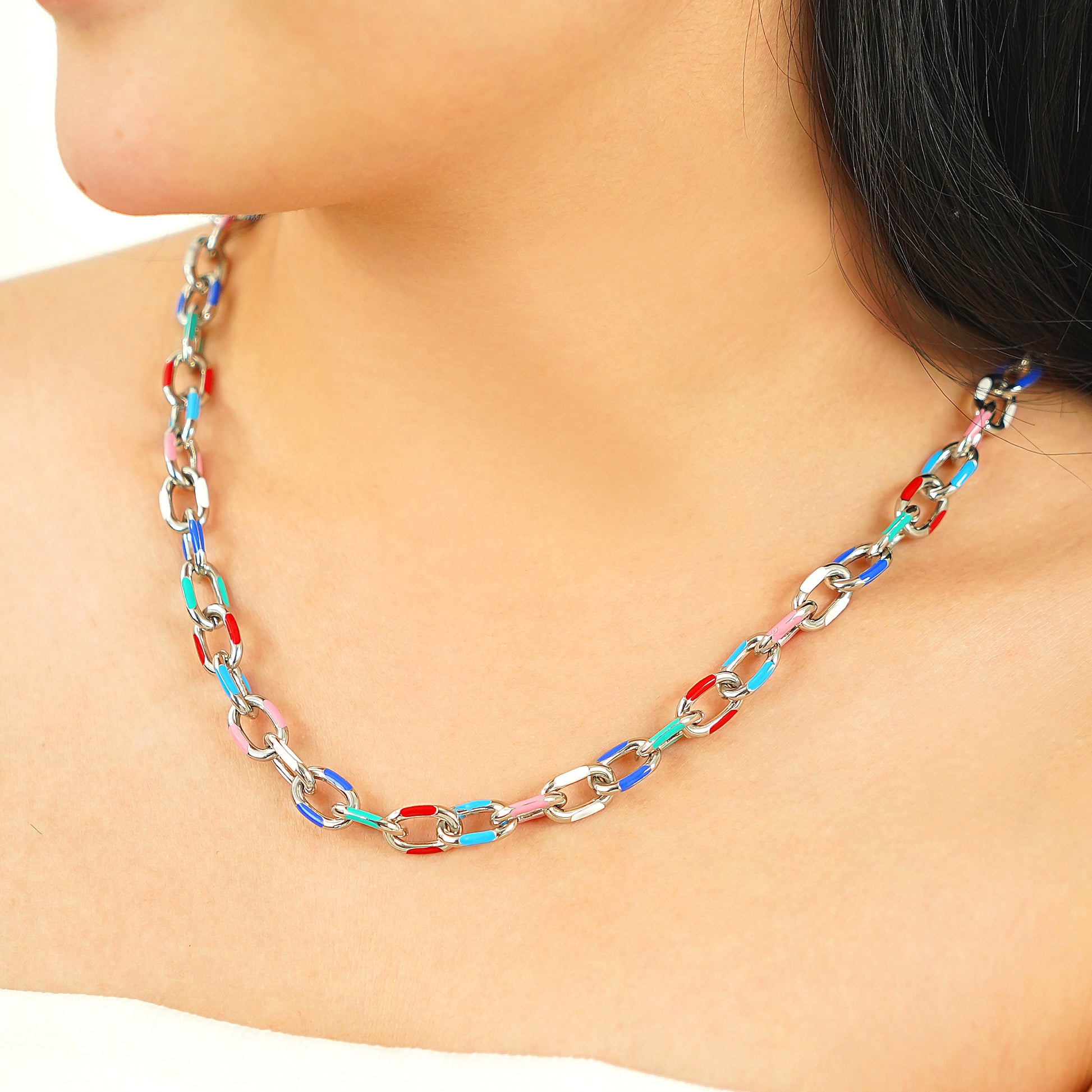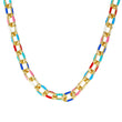 Turn heads with the must-have jewelry trend of 2025—the Paper Clip Enamel Necklace. Crafted with sleek paperclip chain links in luxurious yellow gold plating, this piece features vibrant enamel detailing for a fresh, modern twist on a timeless classic.