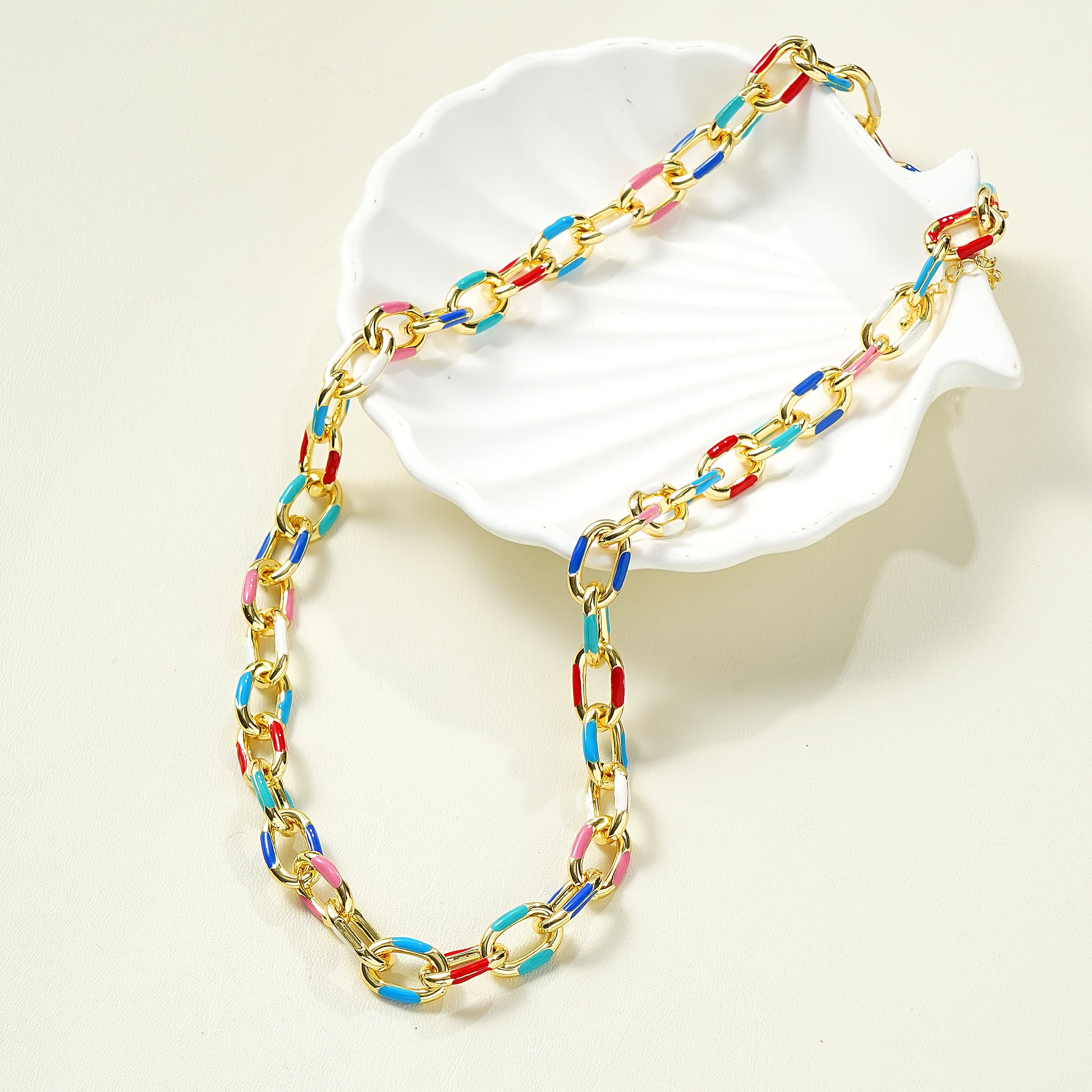 Elevate your necklace stack with this paper clip enamel chain necklace in yellow gold plating—a chic essential for anyone who loves affordable luxury jewelry.