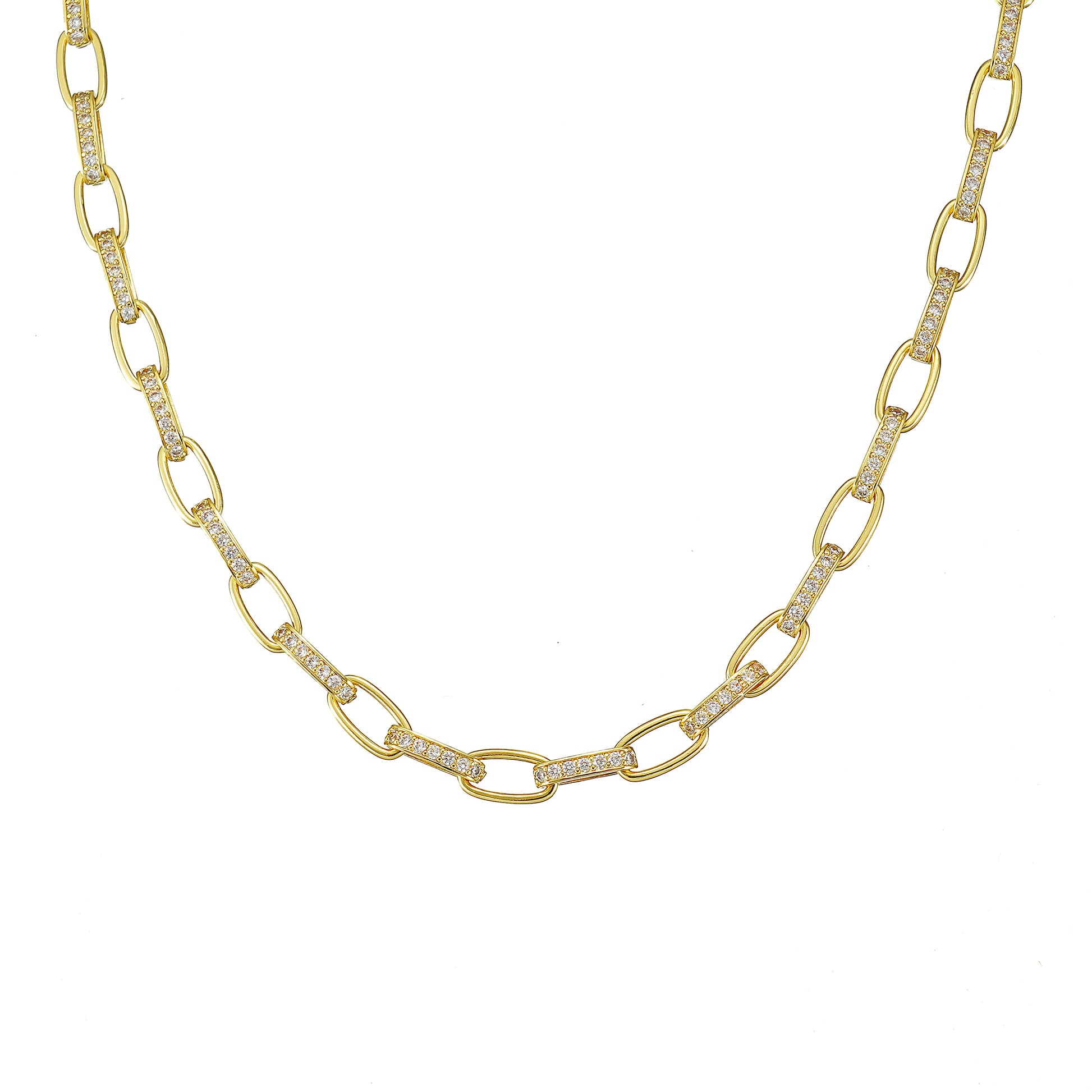 Elevate your collection with this yellow gold plated pavé paper clip necklace—where trend meets timeless shine.