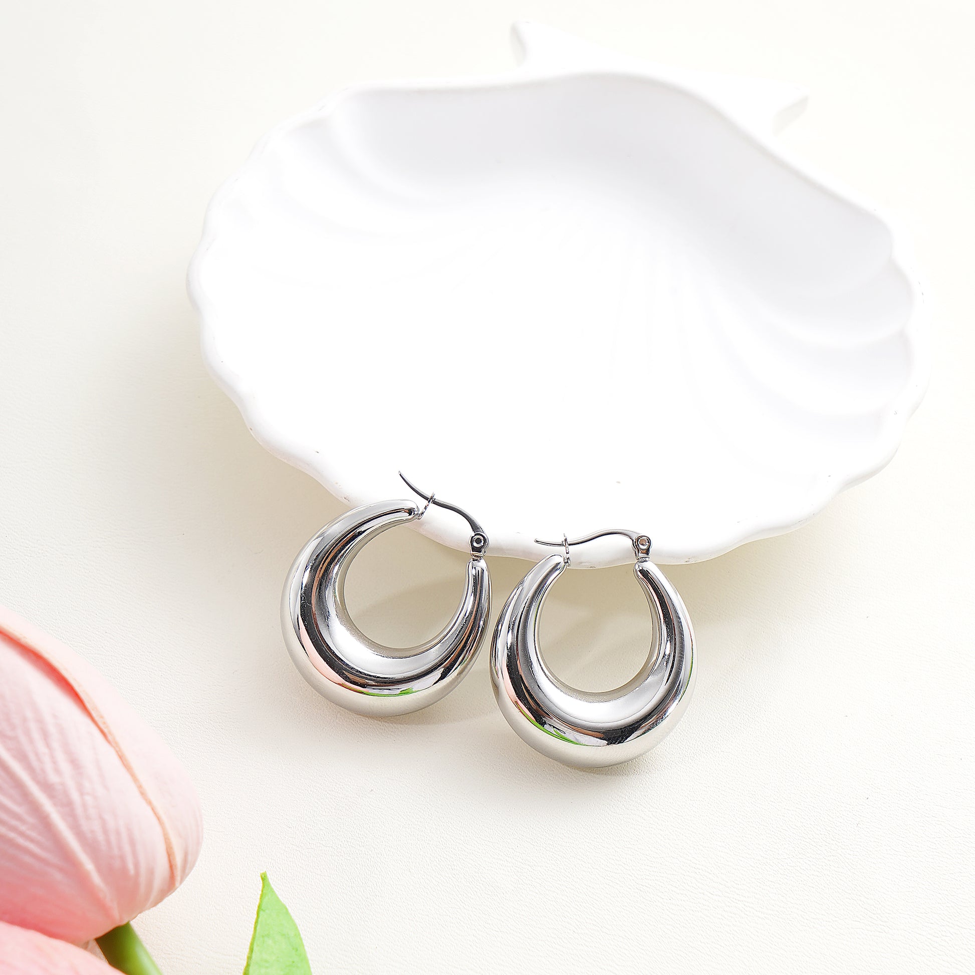 Puffed Hoop Earrings 28mm in 316 Surgical Stainless Steel | Affordable Luxury Gift Jewelry