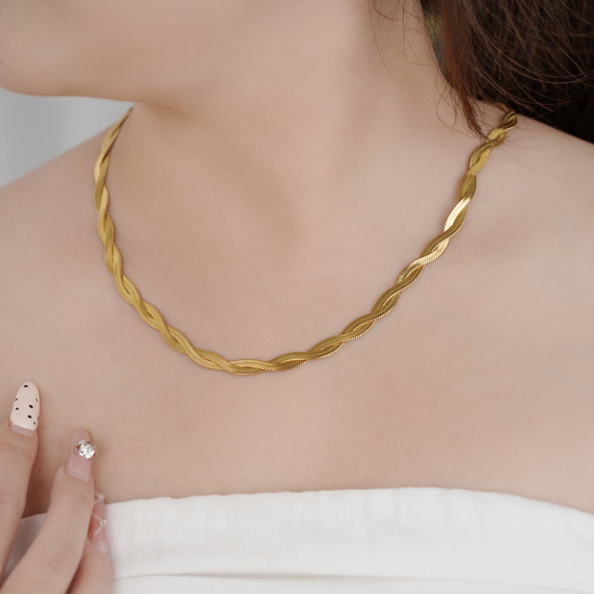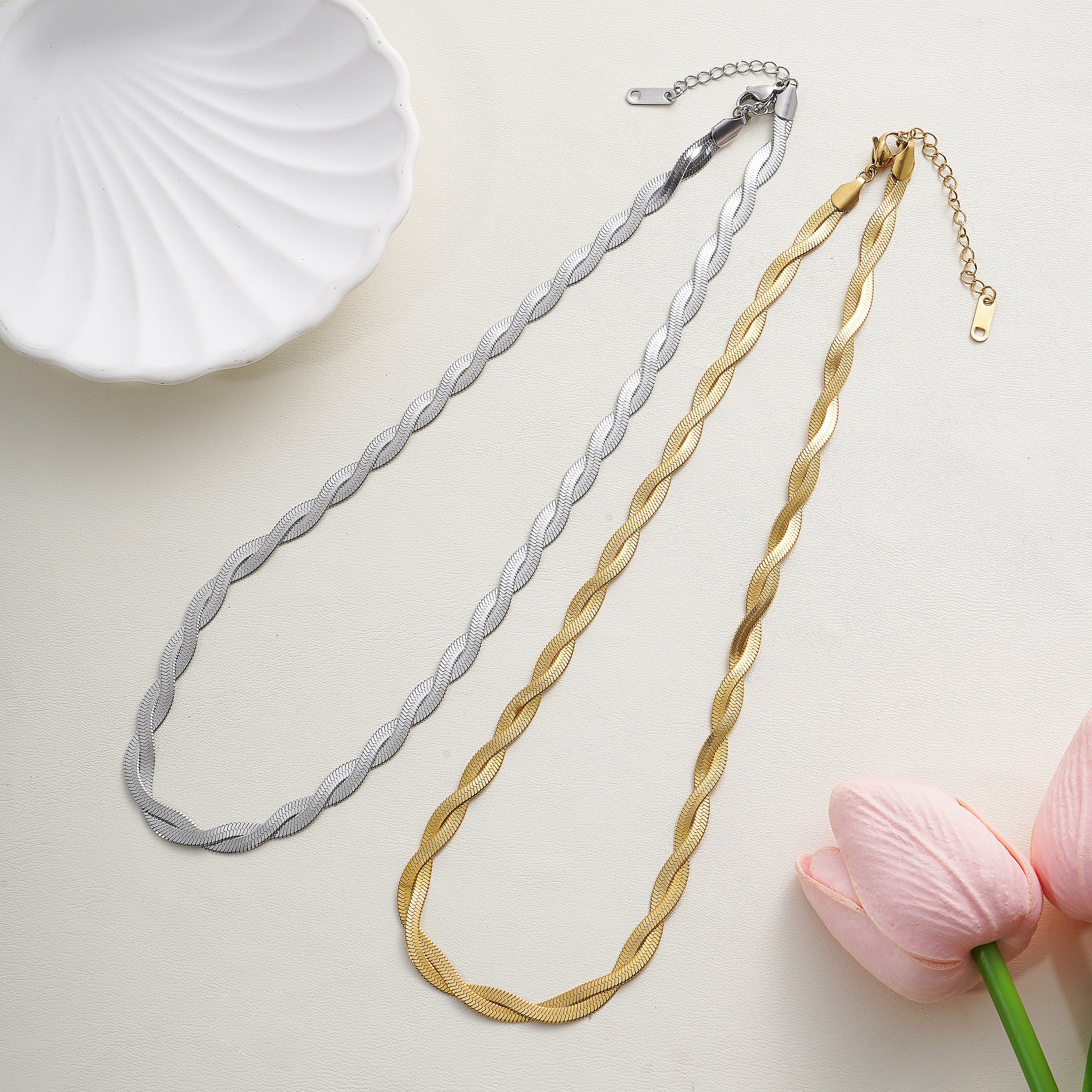 Twisted Double Layered Herringbone Chain Necklace 18” + 2” Extender – Yellow Gold IP 316 Surgical Stainless Steel | Affordable Luxury Gift for Her